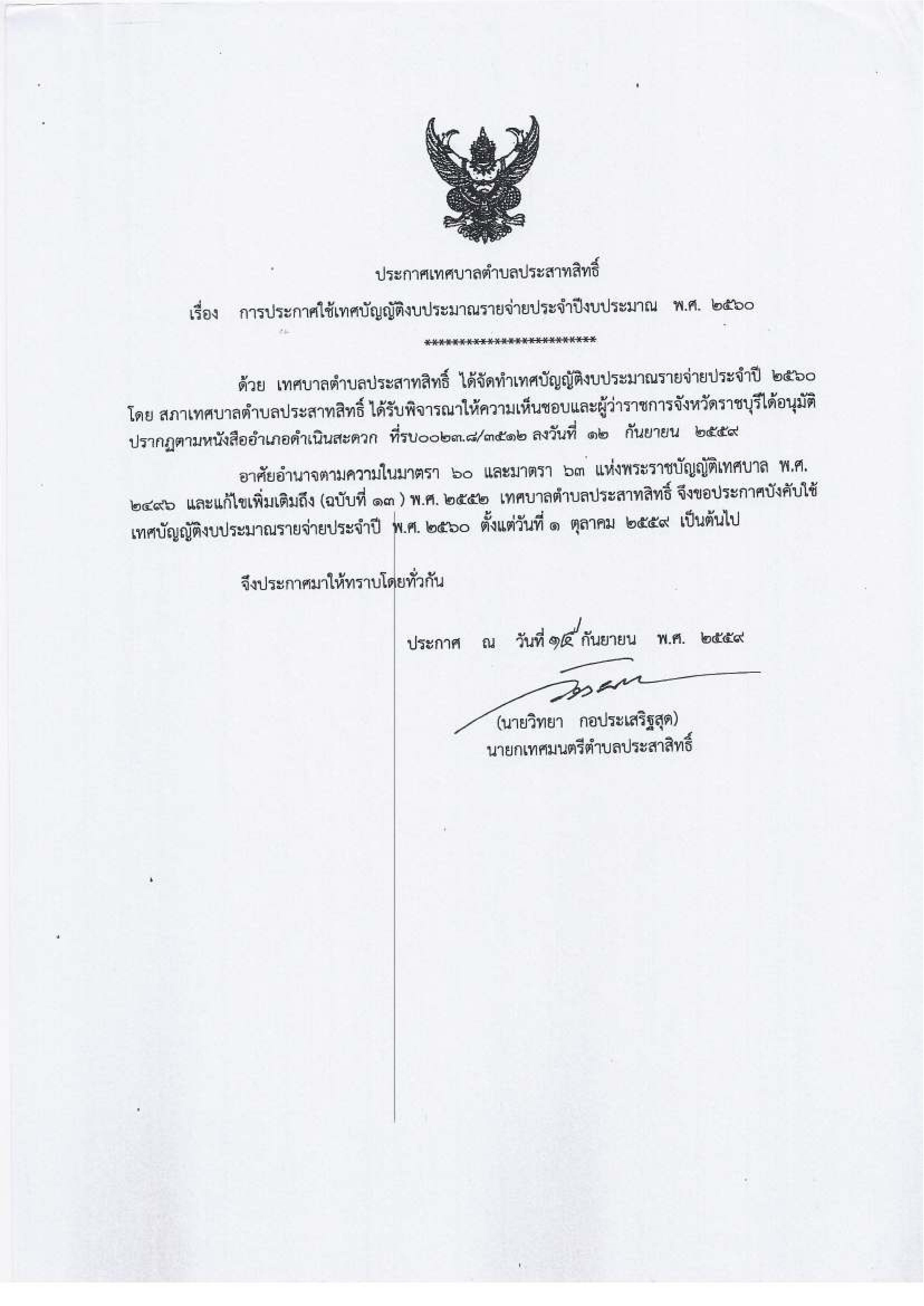 ประกาศเทศบาลตำบลประสาทสิทธิ์